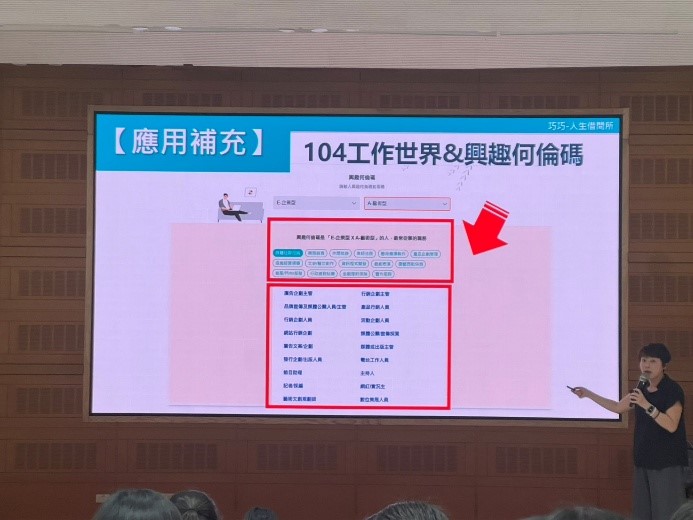 六、 活動內容:本次活動邀請蘇紋巧講師,辦理「UCAN解測-職業興趣探索及共通職能解析」,旨在協助學生認識自我特質,了解職場所需能力,並透過職業興趣與能力測驗,建立初步的職涯規劃概念。學生完成測驗後,講師引導解讀其測驗結果,並進一步說明如何根據興趣與能力規劃個人職涯方向,認識各類職業所需的專業條件與人格特質。講師亦強調企業選才重視工作態度與軟實力,鼓勵學生從興趣出發,發展個人專業。